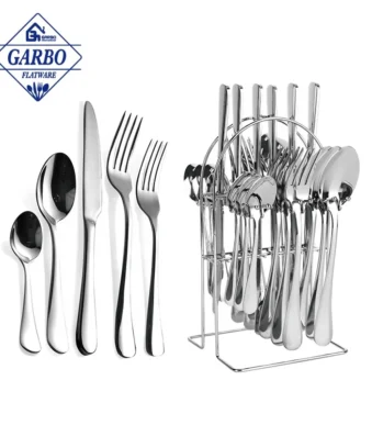 18/10 Silverware Set Sector Design Factory Cheap Stainless Steel 24 Pieces Flatware Set Durable Cutlery Knife Fork with Rack