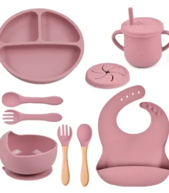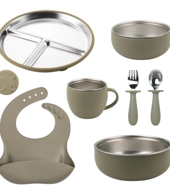 BPA Free Silicone Toddler Feeding Set Baby Dinner Bib Cup Spoon Cutlery Suction Plate Dishware Kids Dining Mealtime Accessory