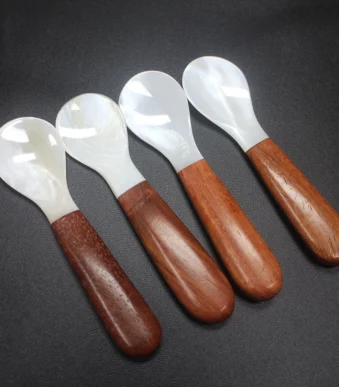 Customized 10CM Wooden Natural Mother of Pearl Shell Caviar Spoon for Fancy Dinner