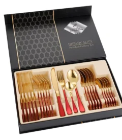 24-Piece Cutlery Set Stainless Steel Modern Design for Wedding Knife Fork Spoon Teaspoon Western Tableware Set Gift Box