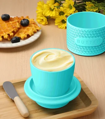 European Design Butter Dish Set Silicone Lid Ceramic Base Air-Tight Container Farmhouse Kitchenware Gift with Butter Knife