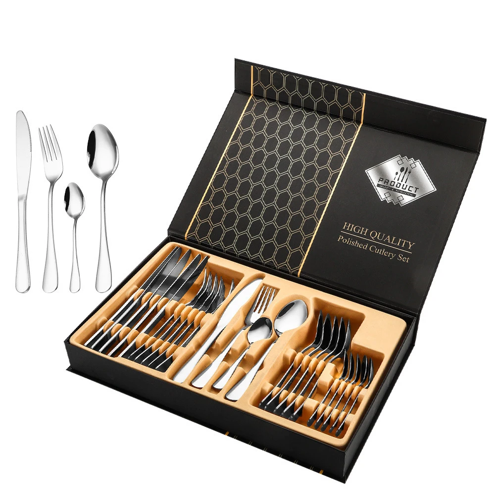 | item | For Wedding 24-Piece Stainless Steel Tableware Set Modern Design Four Main Gifts Western Knife Fork Spoon Suit 1010 |