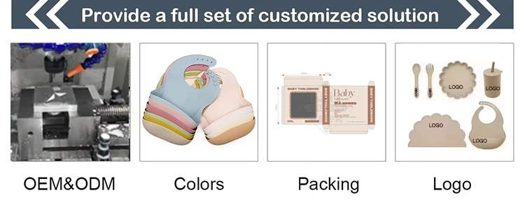 Custom 100% BPA-Free Silicone Suction Bowls Plates Bib Cutlery Spoon Set Kids Baby Feeding Set