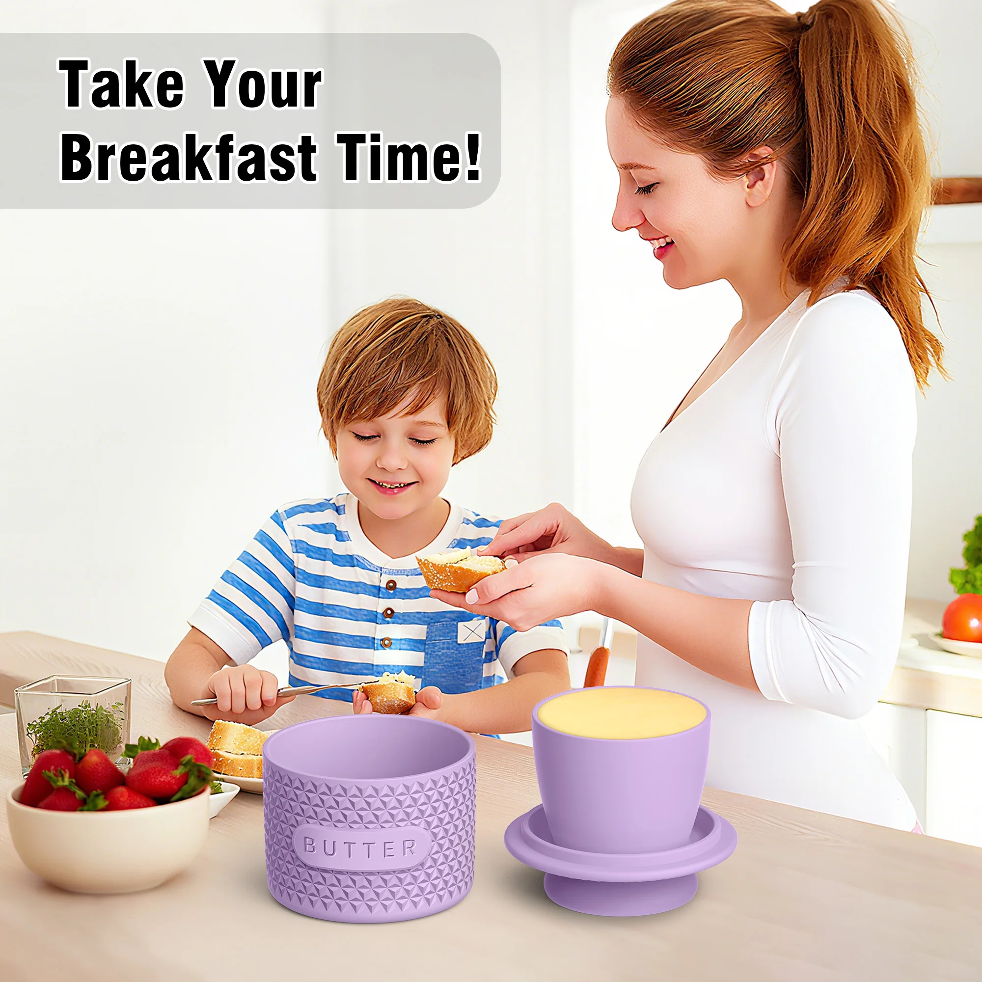 European Design Butter Dish Set Silicone Lid Ceramic Base Air-Tight Container Farmhouse Kitchenware Gift with Butter Knife