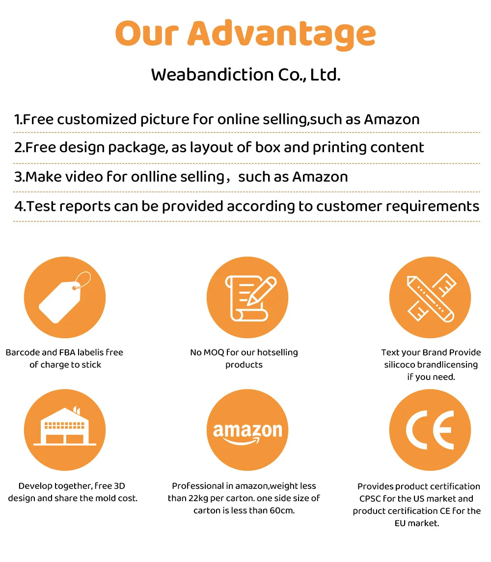 6) Weabandiction Co.,Ltd has 70% of its business from Europe and many more countries in South America, North America . And these customers have cooperated with us for more than 5 years. Our service is supreme and can give customers more trust.