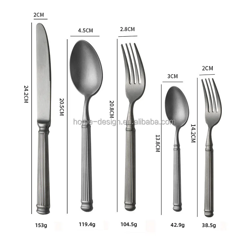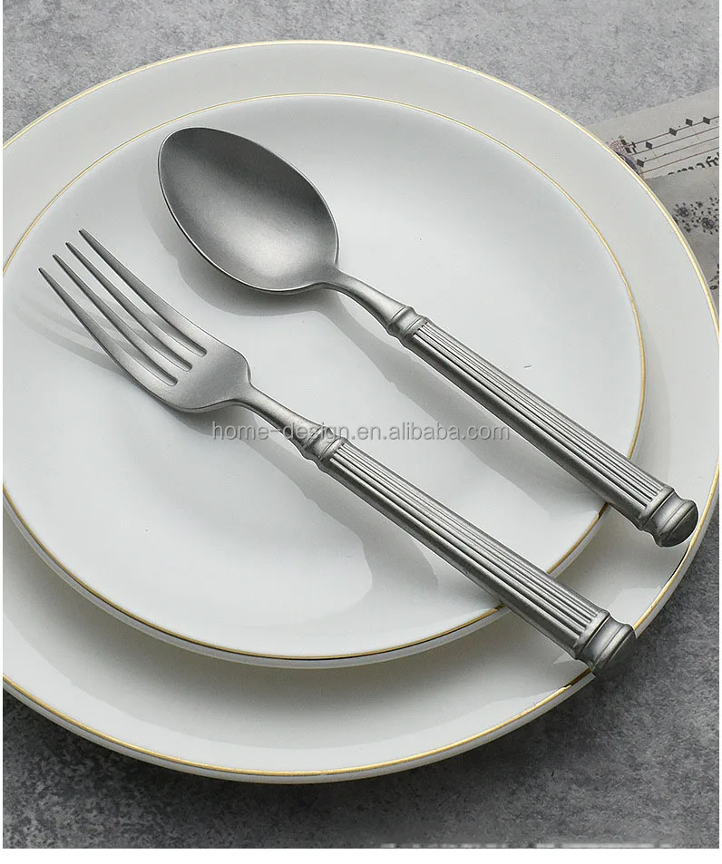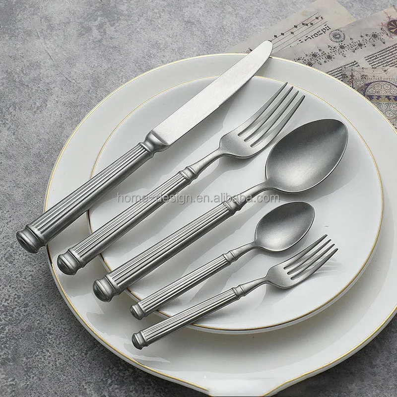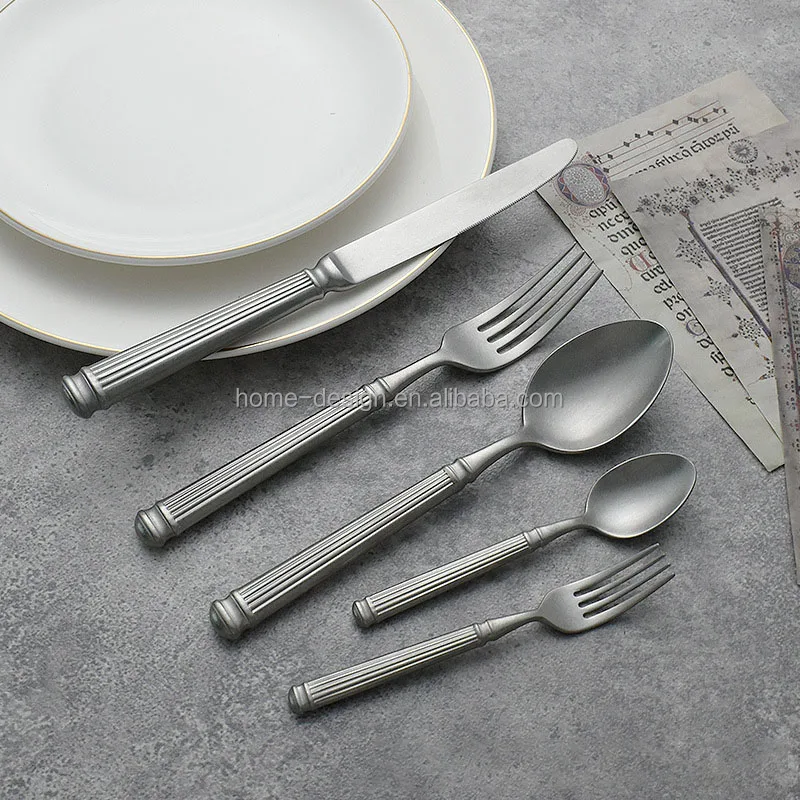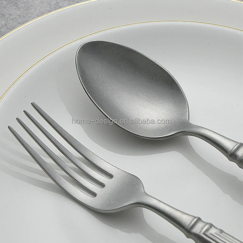 High Quality Retro Stone-Polished 304 Stainless Steel Cutlery Flat Set Popular for Restaurants Huge Stocks Sustainable Feature